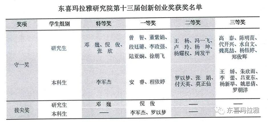 根据《东喜玛拉雅研究院创新创业奖评审制度》,东喜玛拉雅实践创新群管理委员会邀请6位老师和3位学生作为代表,组建了第十三届创新创业奖评审委员会,并于2023年5月19日在S3-507进行评审(考核期2022年11月-2023年4月)。基于客观公正的原则,从申请者的工作状态、守一精神、对实创及研究院的融入和贡献等综合表现,共评出36人次获得本届创新创业奖。其中,守一奖特等奖4名、守一奖一等奖8名、守一奖二等奖10名、守一奖三等奖14名;拔尖奖特等奖1名,拔尖奖一等奖3名。