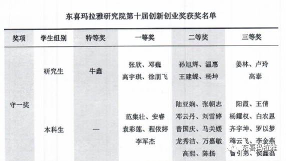 根据《东喜玛拉雅研究院创新创业奖评审制度》,东喜玛拉雅实践创新群管理委员会邀请了6位老师和3位学生为代表,组建了第十届创新创业奖评审委员会,并于2021年11月24日在S3-507进行评审(考核期:2021年5月-2021年10月)。基于客观公正原则,以及申请者的工作状态和综合表现,本届创新创业奖共评出“守一奖”37名。其中,守一奖特等奖1名、守一奖一等奖9名、守一奖二等奖14名、守一奖三等奖13名。