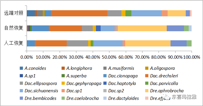 来探究捕食线虫真菌在不同恢复方法下的差异。