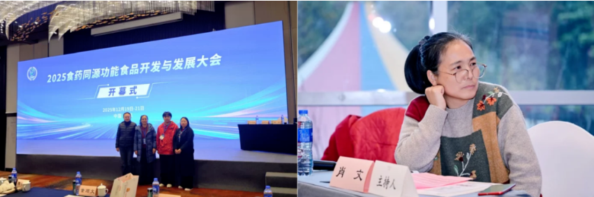 2025年12月19日至21日,大理大学交叉科学中心、东喜玛拉雅研究院由杨晓燕教授带队,佘容副研究员、科研助理李政强及研究生杨舒雅赴成都参加了由全国卫生产业企业管理协会食品与营养健康产业分会主办的“首届食药同源功能食品开发与产业发展交流会”。本次会议围绕“融合传统智慧与科技创新,推动营养健康产业高质量发展”展开,汇聚了来自中医药大健康、功能食品等领域的专家学者与企业代表,共同探讨食药同源产业的科学路径与发展前景。东喜团队在会议中积极参与学术交流,杨晓燕教授主持了“专题八:食品营养与健康”分会场,佘容副研究员与李政强科研助理分别作了题为《大理梭菌发酵酸奶调控肠道菌群和代谢防治微塑料引起的机体损伤》与《大理梭菌发酵酸奶通过肠-肝-脑轴改善熬夜引起的机体损伤》的分会场报告,从微生物发酵与健康调控角度展示了团队在功能食品机制探索方面的最新进展,受到与会者的关注与讨论。