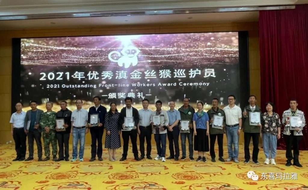 2021年年度滇金丝猴优秀巡护员表彰:会议为2021年度优秀巡护员:六普、和德旺、和德金、张金山、拾风才、安吾农布、鲁茸品初、格茸培初和邓培颁奖。同步启动了巡护员影像赋能培训,旨在为致力于滇金丝猴保护的巡护员提供专业的新媒体技术培训。