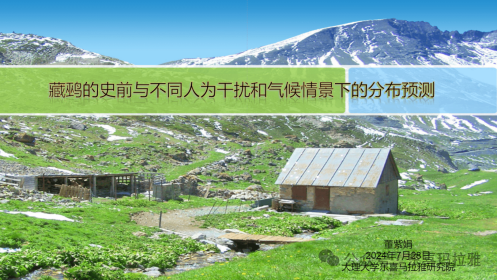 其次,董紫娟带来了《藏鹀的史前与不同人为干扰和气候情景下的分布预测》的报告,本研究聚焦于气候变化及放牧活动对青藏高原特有珍惜鸟种——藏鹀种群分布与生存的影响,采用高精度物种分布模型(SDM)maxent,旨在探讨藏鹀在气候变化情境下与不同放牧情景的关系。