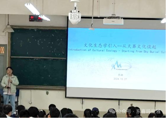 李娜老师紧接着带来了《文化生态学引入——从天葬文化谈起》的报告,引导同学们了解天葬文化的产生背景,鼓励大家多思考、勇于创新实践,努力成为理想中的“美猴王”。