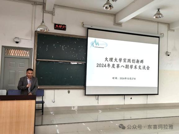 2024年10月27日14:00,大理大学实践创新群在三教副楼F01举行了2024年度第八期学术交流会。本次交流会由韩梦阳主持,由王梦然、郑良、高玉婷和徐世柳四位同学以及李娜老师进行分享,会议最后,李先福老师进行了点评和会议总结。