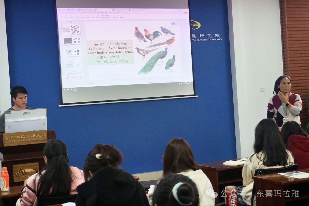 紧接着,罗朝洋为我们带来题为《Insight into body size evolution in Aves:Based on some body-size-related genes》的报告。为我们带来了两个生动有趣的故事,第一个故事,他带来不同体型鸟类的适应性进化机制,揭示了不同谱系类别鸟类分子水平上差异的进化格局,以及在鸟类体型差异性进化模式背后趋同的演化路线。第二个故事,他为我们讲述了他被东喜院开除并重新加入的经历。展示了他被开除期间的心路变化,并深刻剖析被开除的原因。过程中罗朝洋同学展示了步入笃定,初心不悔,敞开心扉接受导师的过程,在肖文老师和沐远老师引导下蜕变,同时向我们传达了“笃慎”的实创精神。