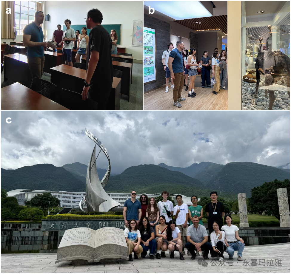 在学术交流过程中,由东喜院的Davide Fornacca老师向来访师生详细介绍了东喜院的研究方向、研究成果以及学生培养工作,特别提到了东喜院在东喜玛拉雅地区开展生态和生物多样性研究所取得的成果,并分享了现阶段开展的科研项目和未来国际合作计划。随后,东喜院李军杰同学进行了个人科研成果的分享交流,Cyril C. Grueter教授团队对李军杰分享的研究表现出浓厚的兴趣,并进行了积极的互动讨论,现场学术氛围浓厚。在学术交流环节结束后,东喜院团队陪同Cyril C. Grueter教授团队一同参观了大理大学生物科学馆和情人湖等地,向国际友人宣传了美丽的大理大学。
